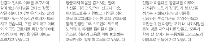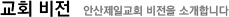 주님의 이름으로 여러분을 초대합니다. 안산제일교회는 정통 장로교 개혁신앙에 기반을 두고 1962년 12월에 안산시 고잔들에서 출발하여 오늘에 이르고 있으며, 우리도시와 민족, 그리고 세계를 주님께 인도하자는 꿈을 품고 소외된 이웃을 찾아, 세계선교를 위해 기도하면서 전력하고 있습니다. 안산제일교회에 오셔서 예수 그리스도를 통해 하나님의 백성이 되는 기쁨을 누리시고, 예수 그리스도의 복음을 증거하는 주역이 되실 수 있기를 진심으로 바랍니다.